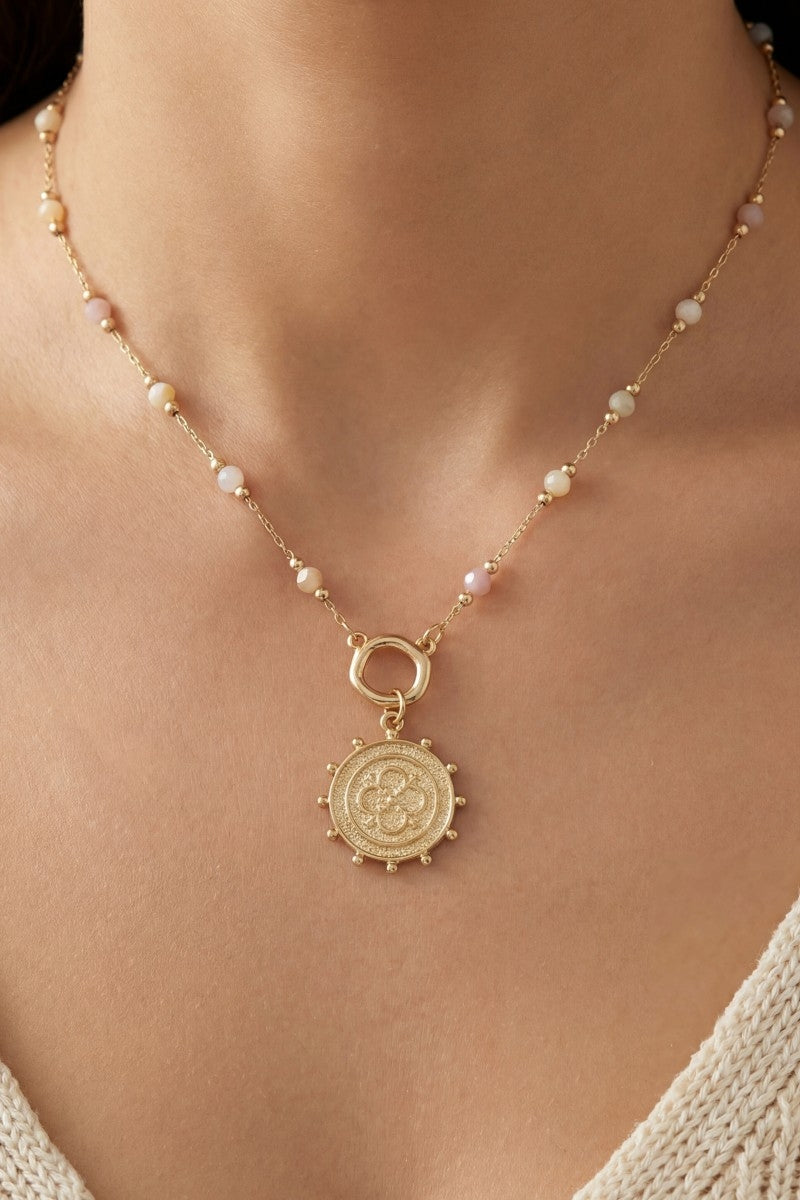 This pendant necklace brings a unique clover coin style. Immerse yourself in fashion finesse with this statement pendant necklace.