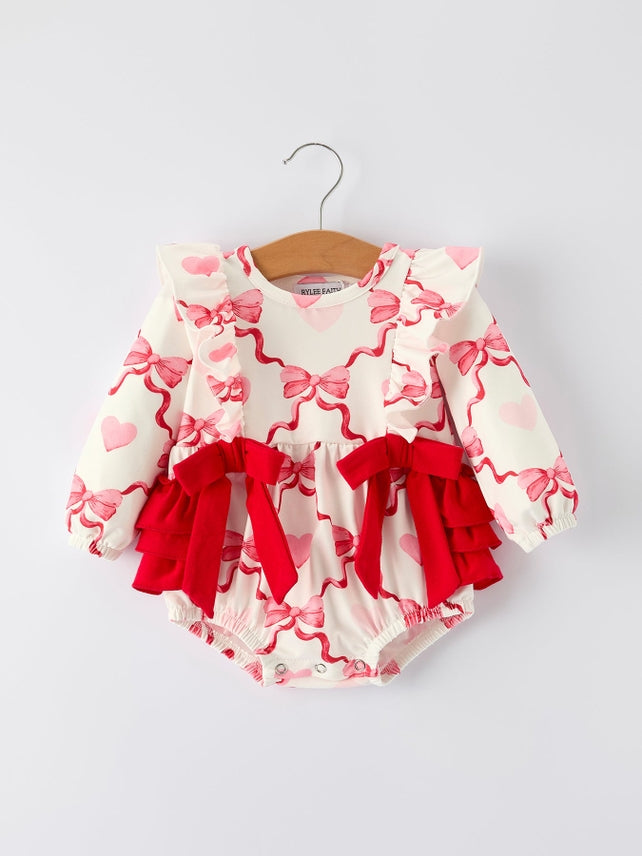 Celebrate love and charm with this Girls Valentine Romper featuring a sweet heart print and an adorable bowknot design. Crafted for comfort and style, it’s perfect for little girls to wear on Valentine’s Day or any special occasion, ensuring they stand out with a festive, playful look. The soft fabric and easy fit make it ideal for all-day wear, combining cuteness with practicality effortlessly.
