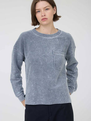 Denim Washed Ribbed Pocket Pullover