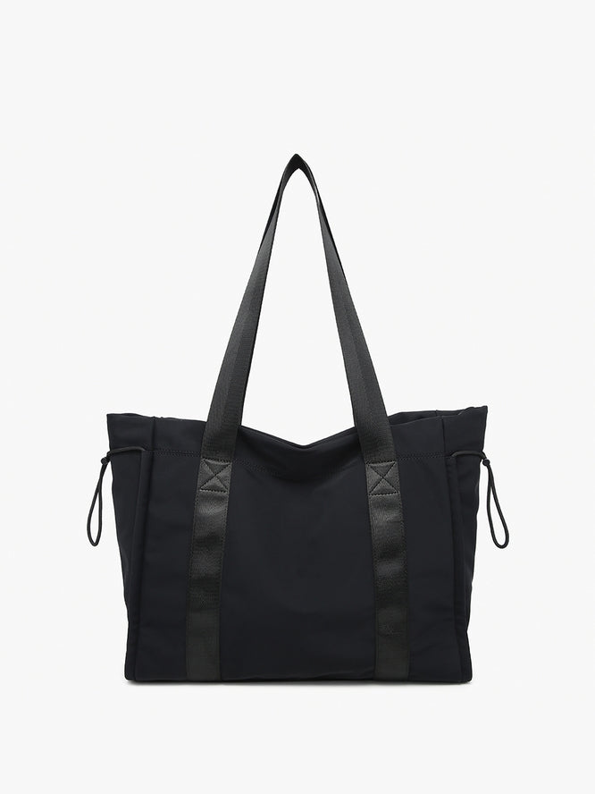 𝐅𝐞𝐚𝐭𝐮𝐫𝐞𝐬: • Drawstring Design: Provides a stylish and secure way to close the tote. • Contrast Handle: Adds a fashionable touch and makes carrying comfortable. • Secure Top Zip Closure: Ensures your belongings are kept safe and secure. • Trolley Sleeve: Convenient for travel, allowing you to slip the tote over your luggage handle. • Spacious Interior: Offers ample space for carrying your essentials in style. • Durable Nylon Material: Ensures long-lasting use and easy maintenance.