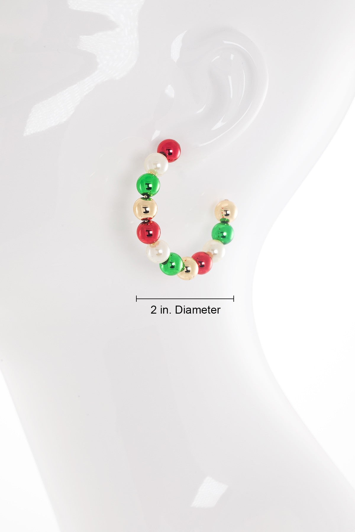 Bright and versatile festive hoop earrings feature smooth colored beads accented with subtle gold spacers