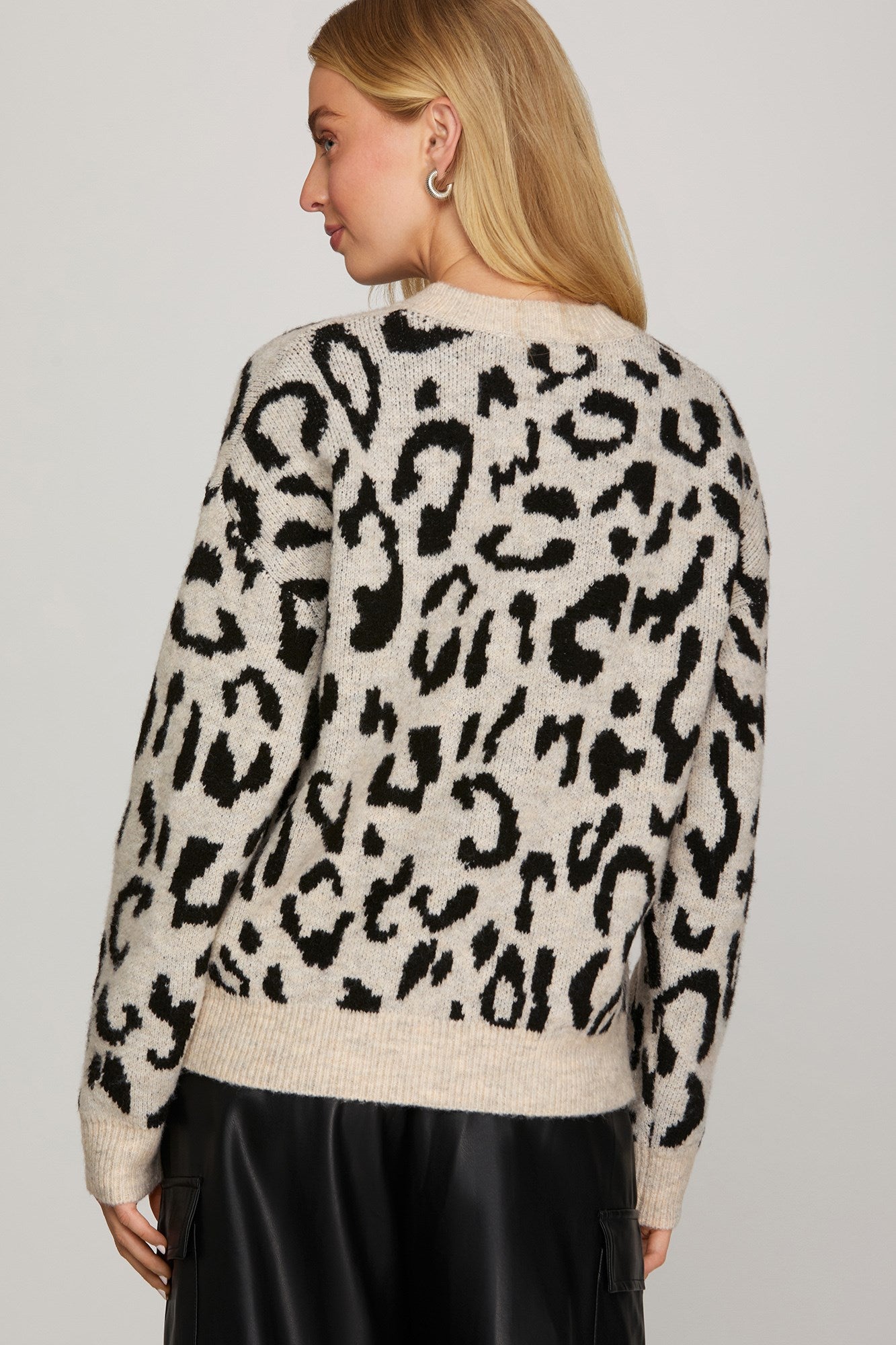 LONG SLEEVE LEOPARD PATTERN SWEATERMODEL IS 5'9 AND WEARING SIZE SMALL