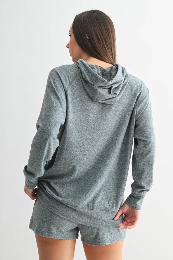 Wrap yourself in the dreamy softness. Crafted from our best-selling brushed Hacci fabric that feels as light and airy as a cloud, this hoodie features a classic kangaroo pocket and an adjustable contrast natural drawstring for an easygoing finish. Whether you're lounging in or heading out, this hoodie delivers effortless coziness with a touch of style.
