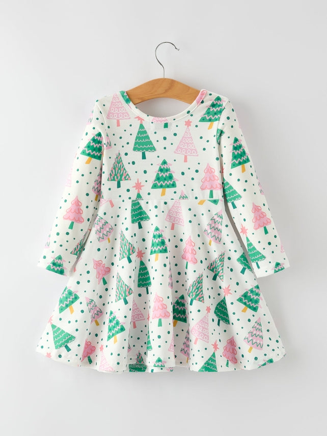 Embrace the festive spirit with this charming holiday dress adorned with delightful Christmas tree and snow prints. Designed for comfort and style, it’s ideal for holiday celebrations, family photos, or cozy winter gatherings. Bring joy and warmth to every occasion with a dress that’s as festive as it is comfortable.