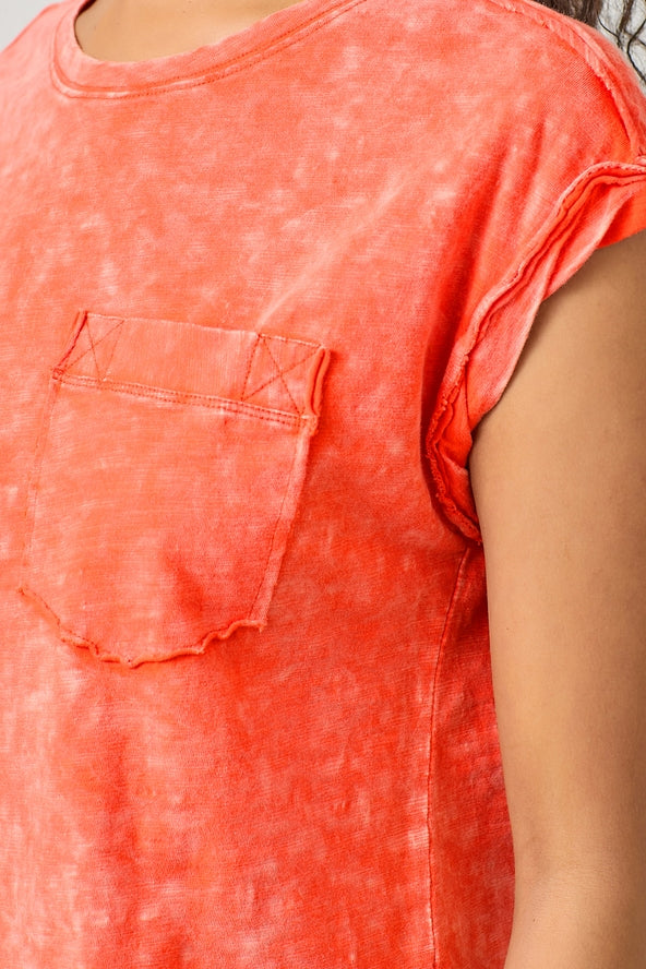 Washed Slouchy Essential Tee • Round neck • Bust pocket • Side slits • Rolled short sleeves •