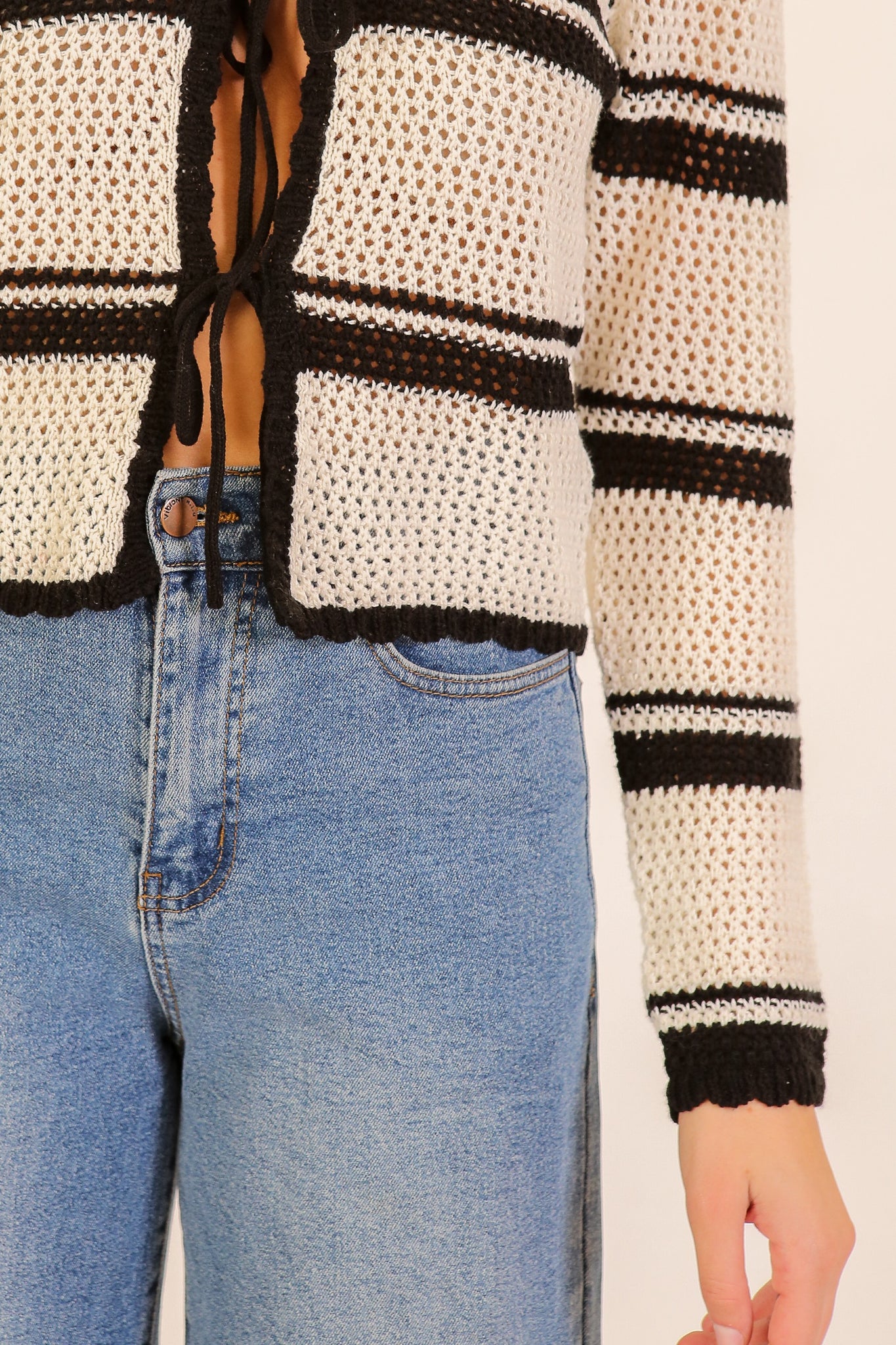 Ivory + Black Scalloped Crochet Cardi