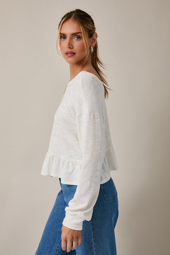 • Load image into Gallery viewer, White Scoop Peplum Top